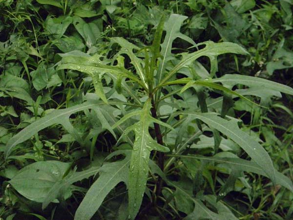 山莴苣,属桔梗目,菊科多年生草本,高50-130厘米。根垂直直伸。茎直立,通常单生,常淡红紫色,上部伞房状或伞房圆锥状花序分枝,全部茎枝光滑无毛。 山莴苣干茎叶中含粗蛋白,还含有较多的胡萝卜素、维生素C等。山葛首也可作为人的一种蔬菜直接食用,生食清新鲜美,是一道有凉血、败火作用的佳肴。山窝芭全草均可入药,夏秋季采收,性寒,味苦,有清热解毒,活血祛瘀,健胃之功效,可治疗阑尾炎、扁桃腺炎、疮疖肿毒、宿食不消、产后瘀血。